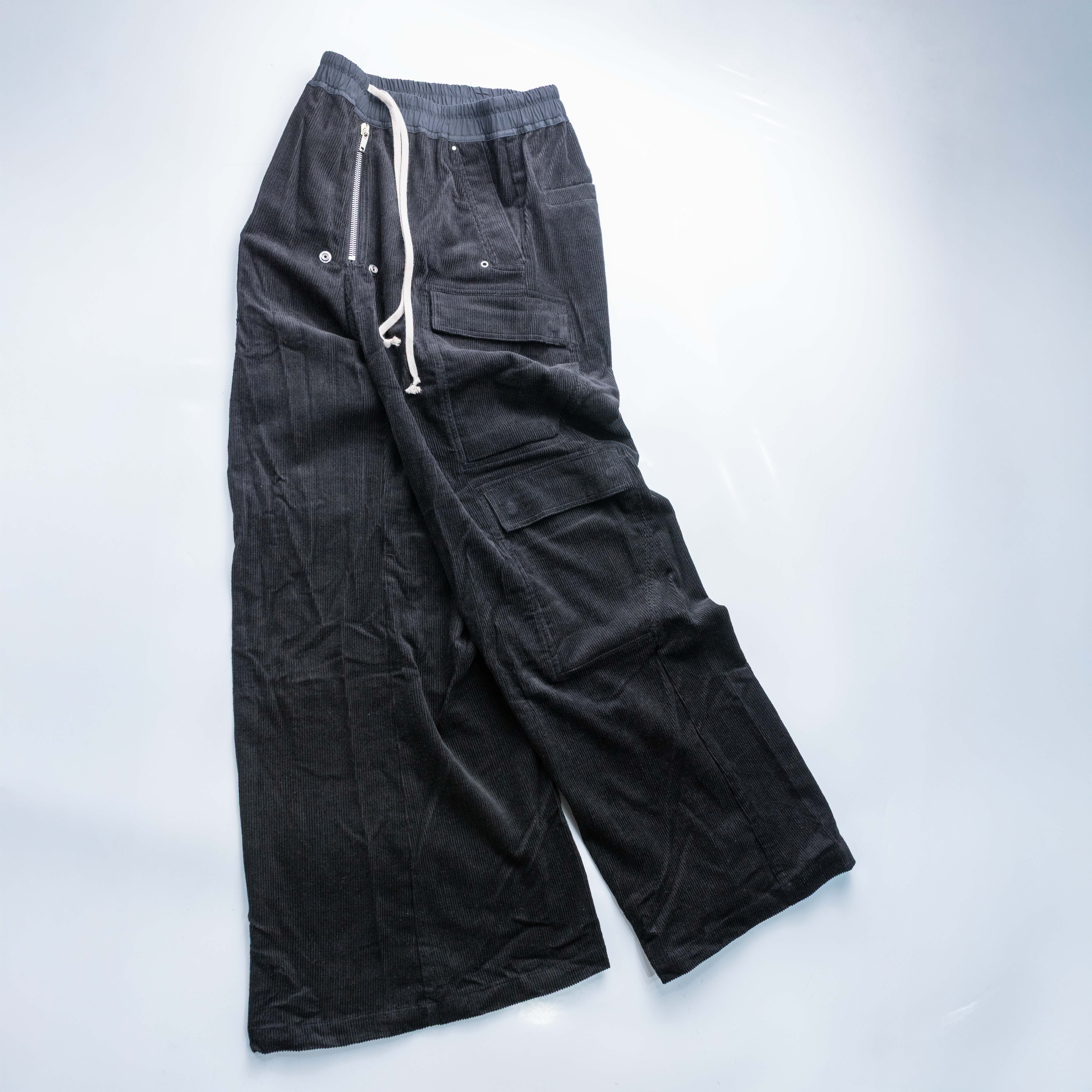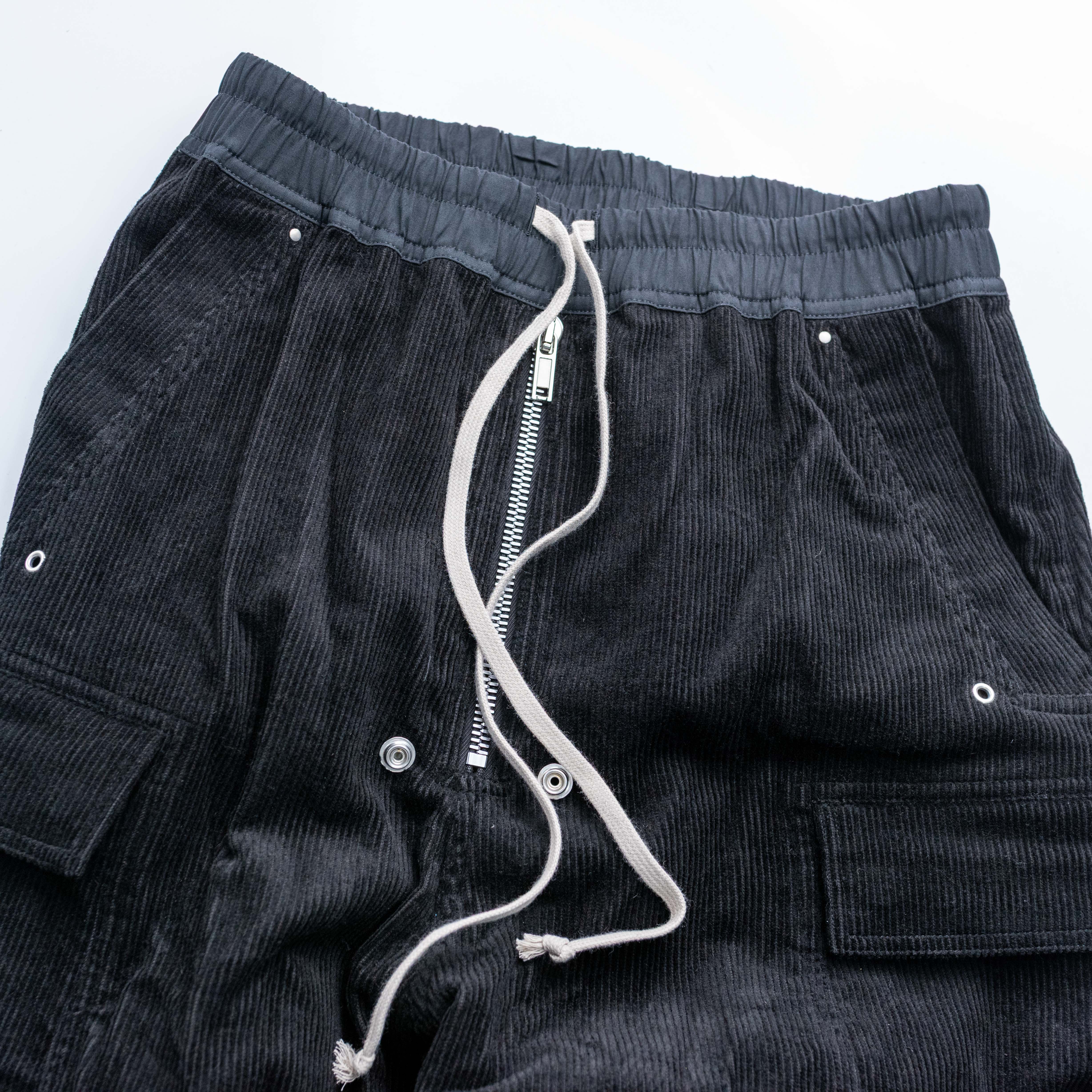 Rick Owens 主線 Cargo Bela 燈芯絨口袋寬褲 黑色