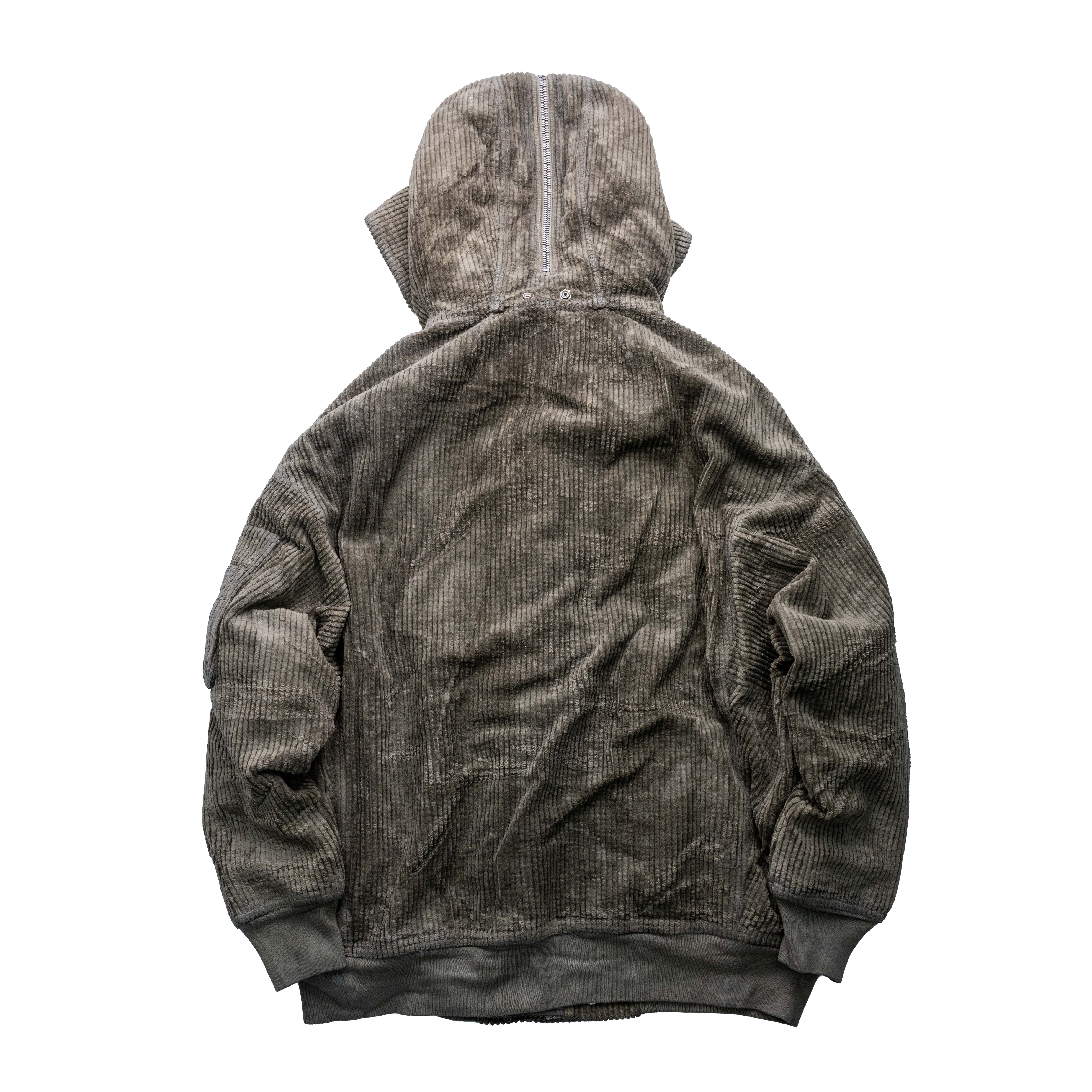 Rick Owens DRKSHDW 燈芯絨連帽長版飛行員外套 塵色