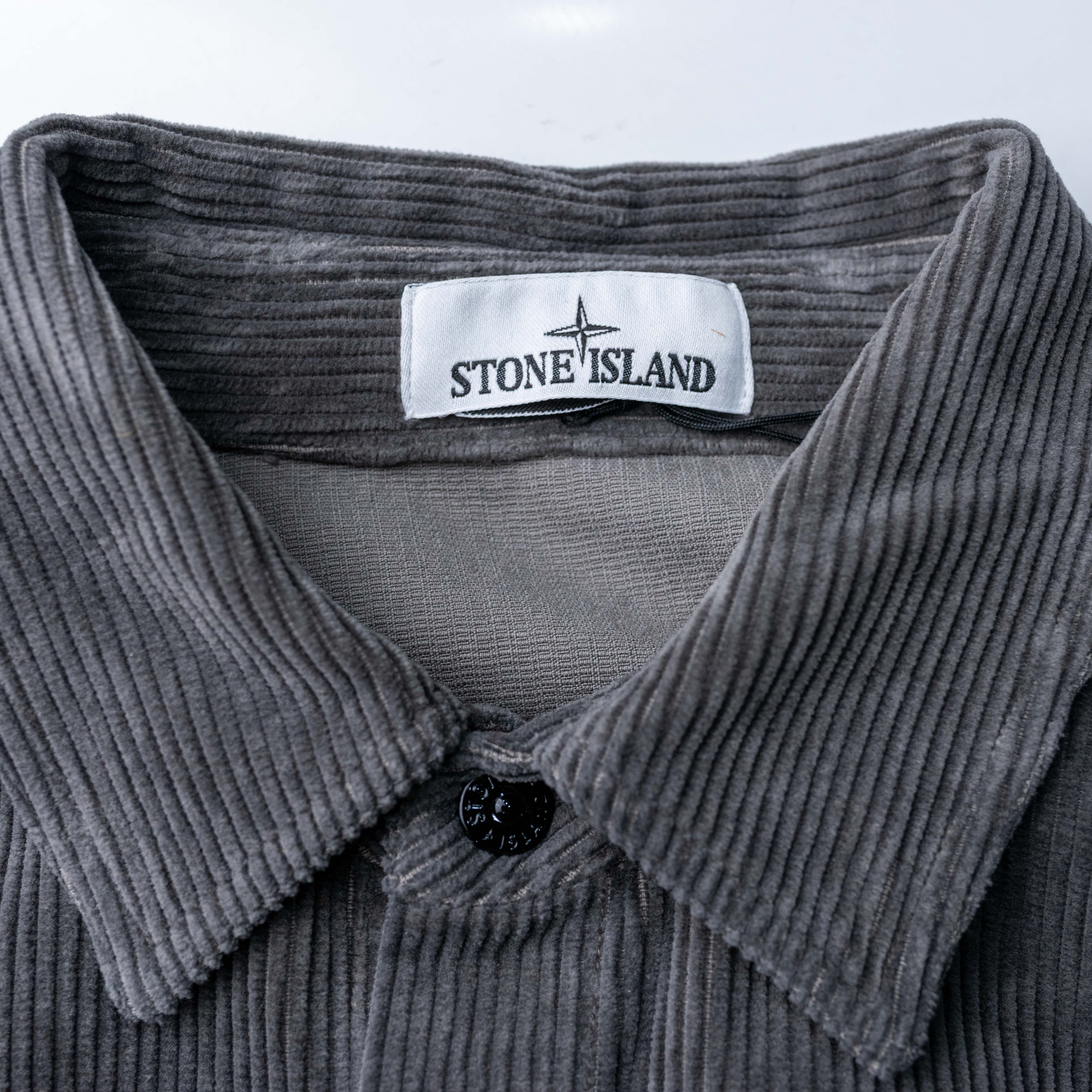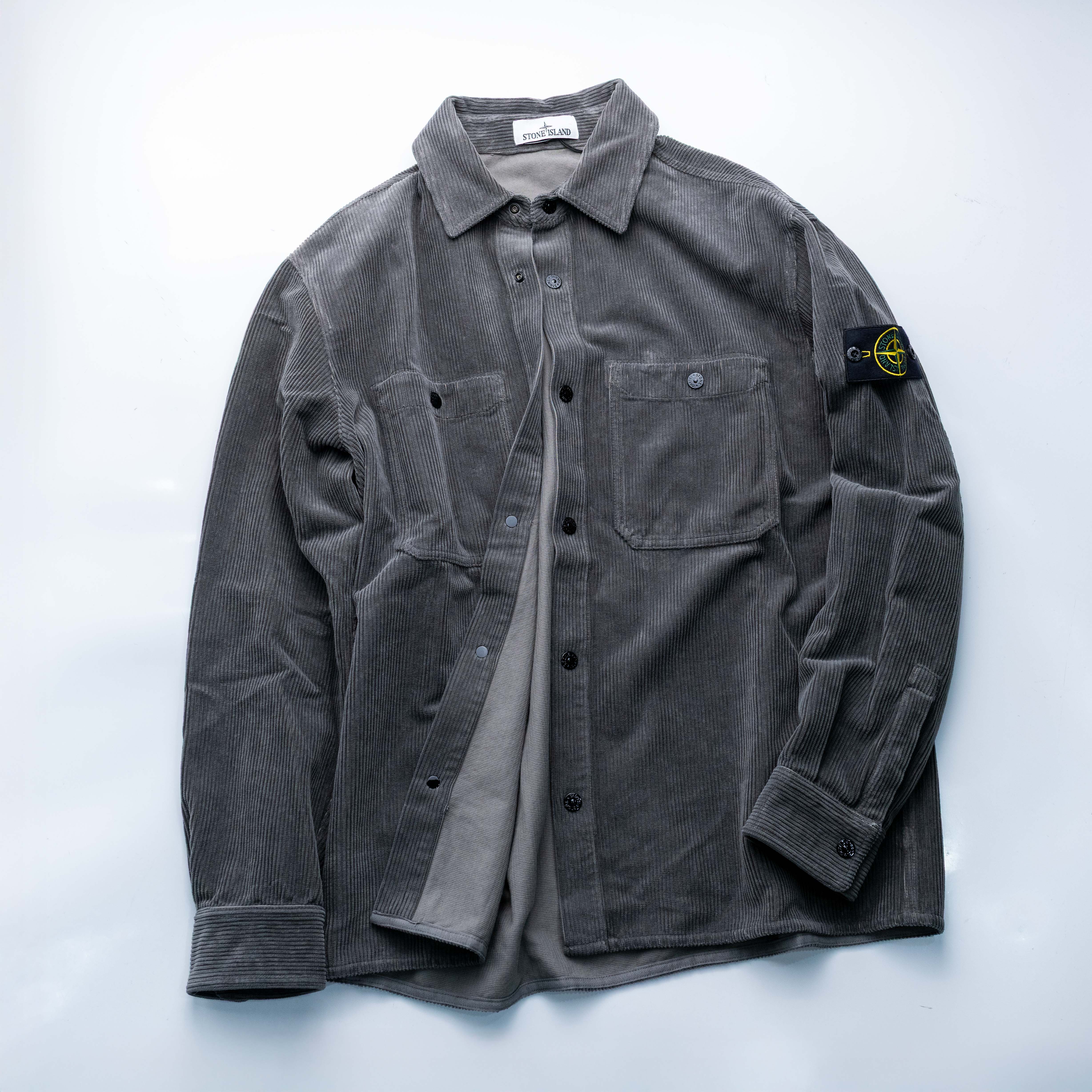 Stone Island 寬鬆壓扣燈芯絨襯衫外套 水泥灰