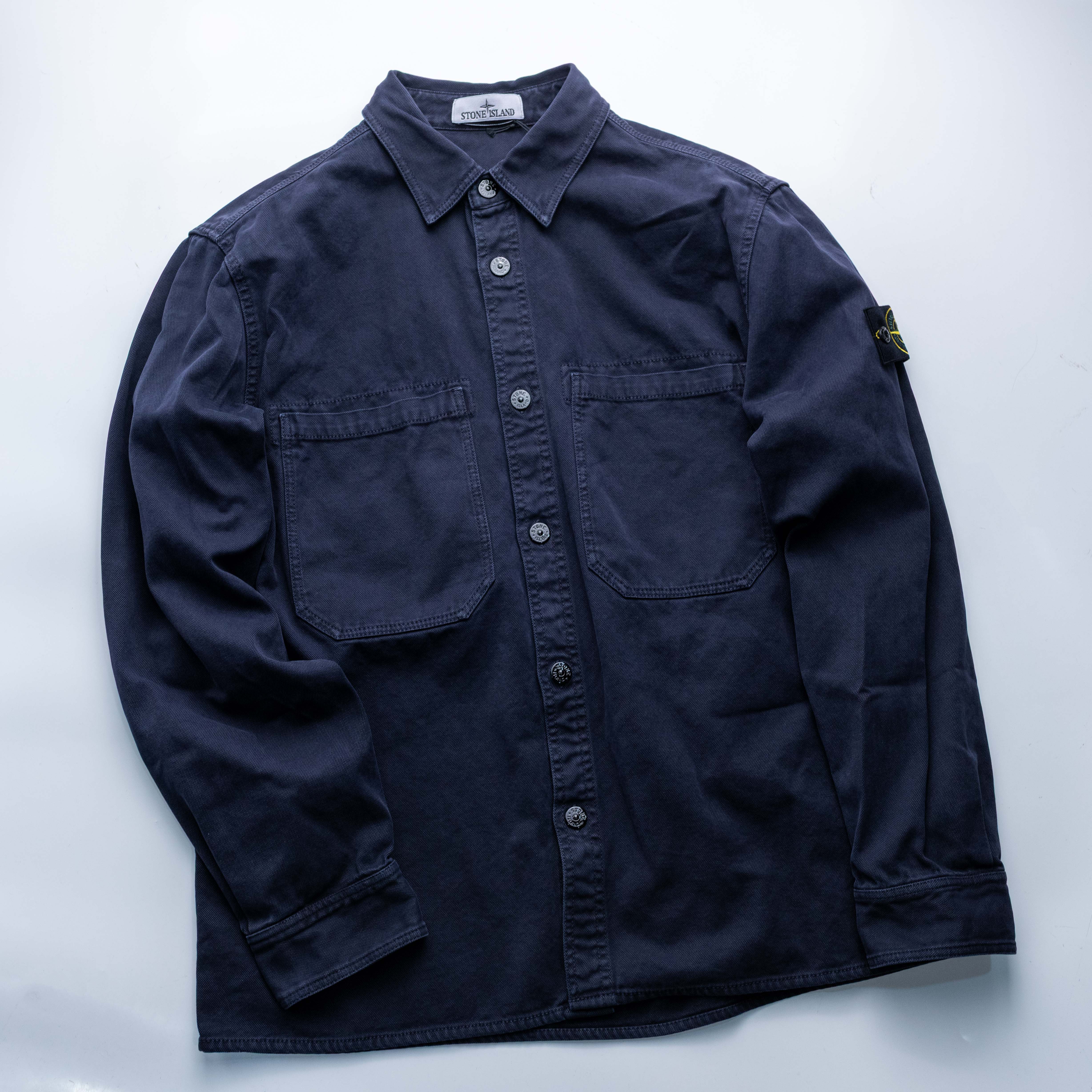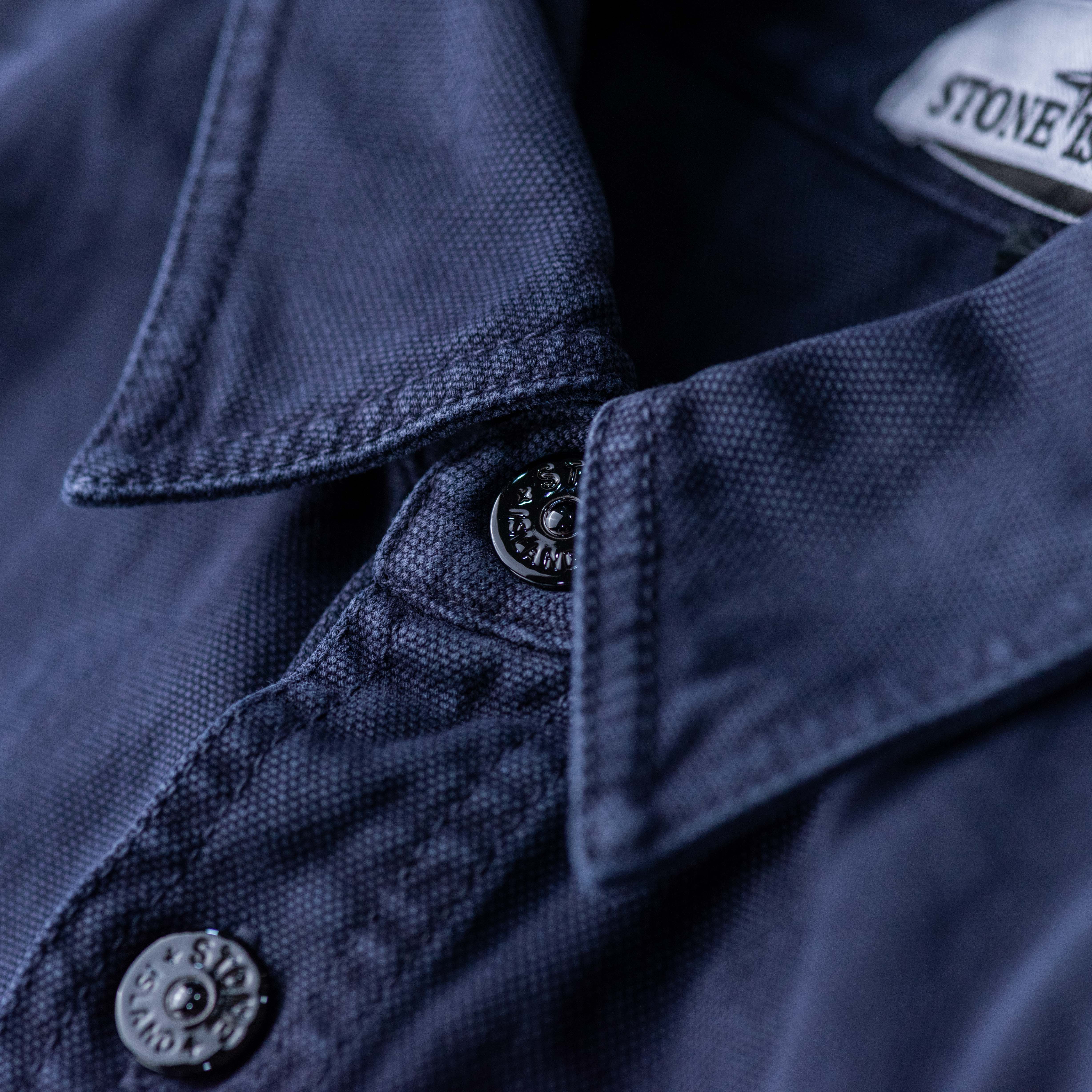 Stone Island 巴拿馬棉鈕扣襯衫外套 深藍
