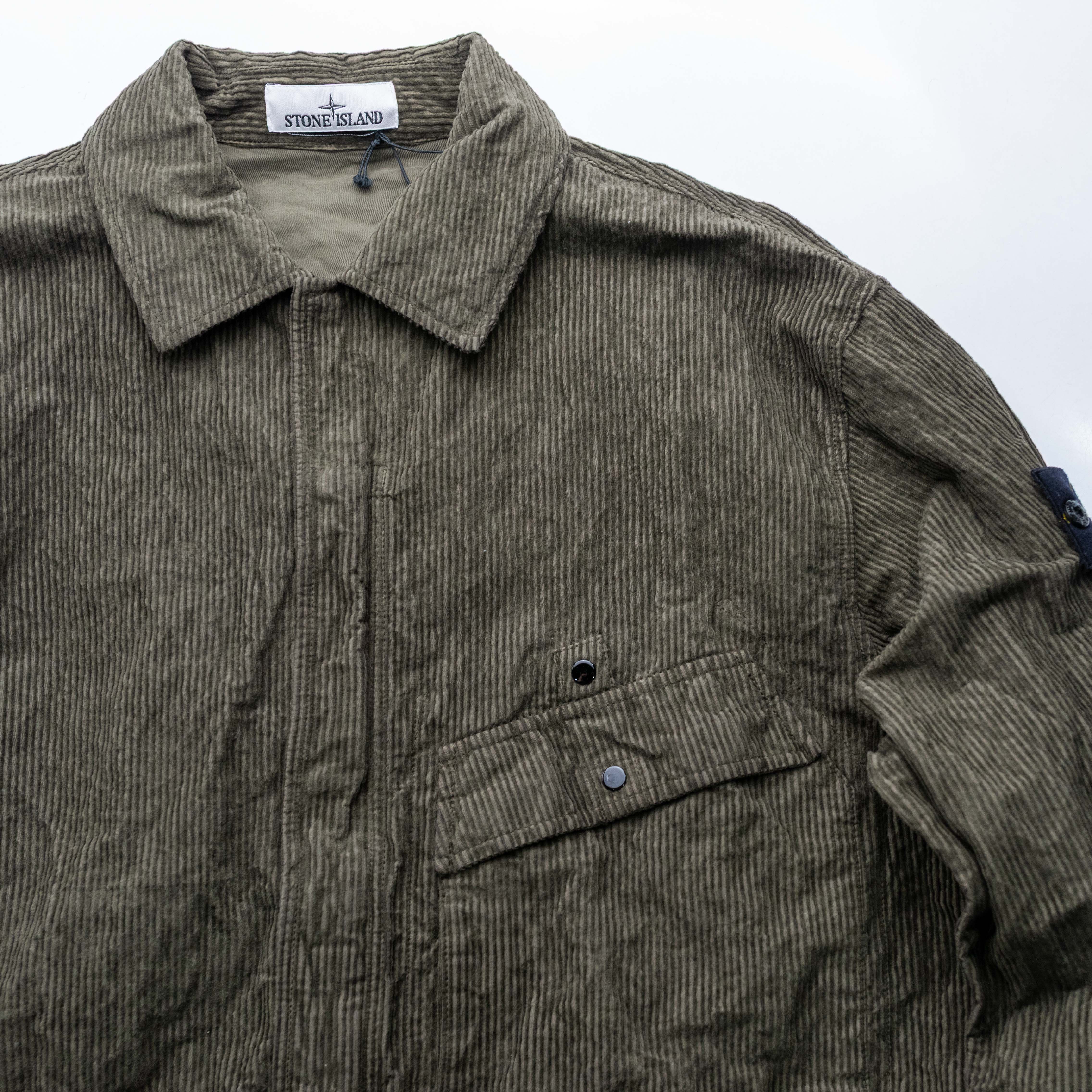 Stone Island 抓皺尼龍燈芯絨外套 軍綠